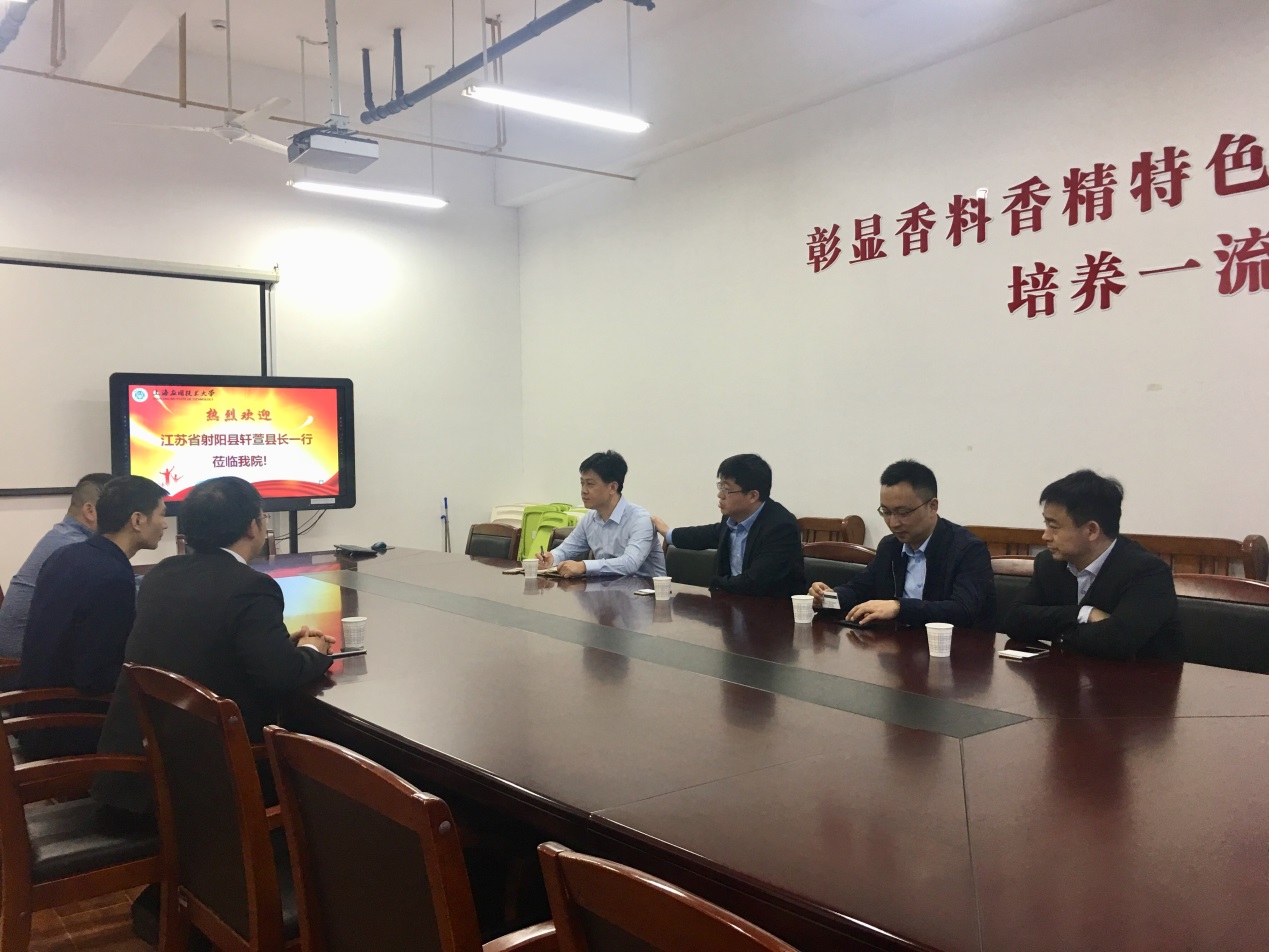 4月27日,江苏省射阳县副县长轩萱一行4人来访香料学院。香料香精联合党委副书记、香料学院副院长陈翔,副院长冯涛等热情接待了来访客人。