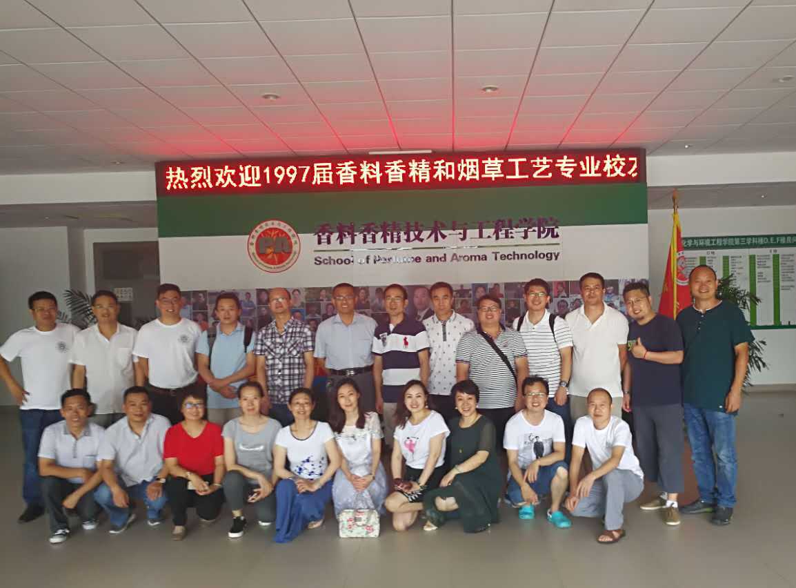 7月8-9日,香料学院1997届香料香精和烟草工艺专业校友组织了毕业20周年的聚会,邀请当时的班主任和任课教师参加,并于9日下午,专程来到奉贤校区参观香料学院实验室和校园,香料香精联合党委书记王化田、香料学院实验中心主任、工会主席蔡宝国老师亲切接待了“回家”的校友,全程陪同他们参观学院实验室、荣誉成果展示厅以及校园具有代表性的景观,并与他们合影留念。