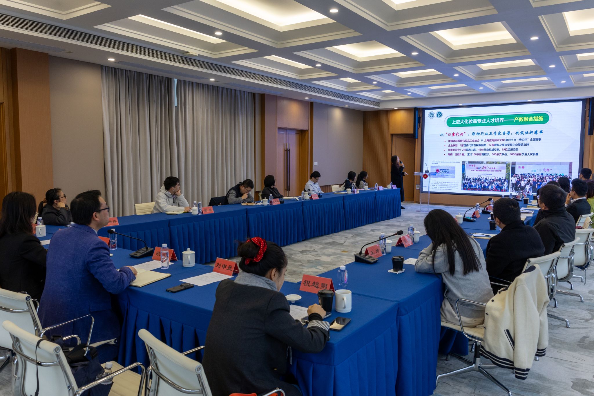 上海创元化妆品有限公司、莹特菲勒化妆品(上海)有限公司、上海欧润化妆品有限公司、上海绵花棠化妆品有限公司等多家企业代表介绍了人才需求,并现场回应了为学生提供适配岗位等事宜,表达了与我校建立人才合作关系的强烈意愿。